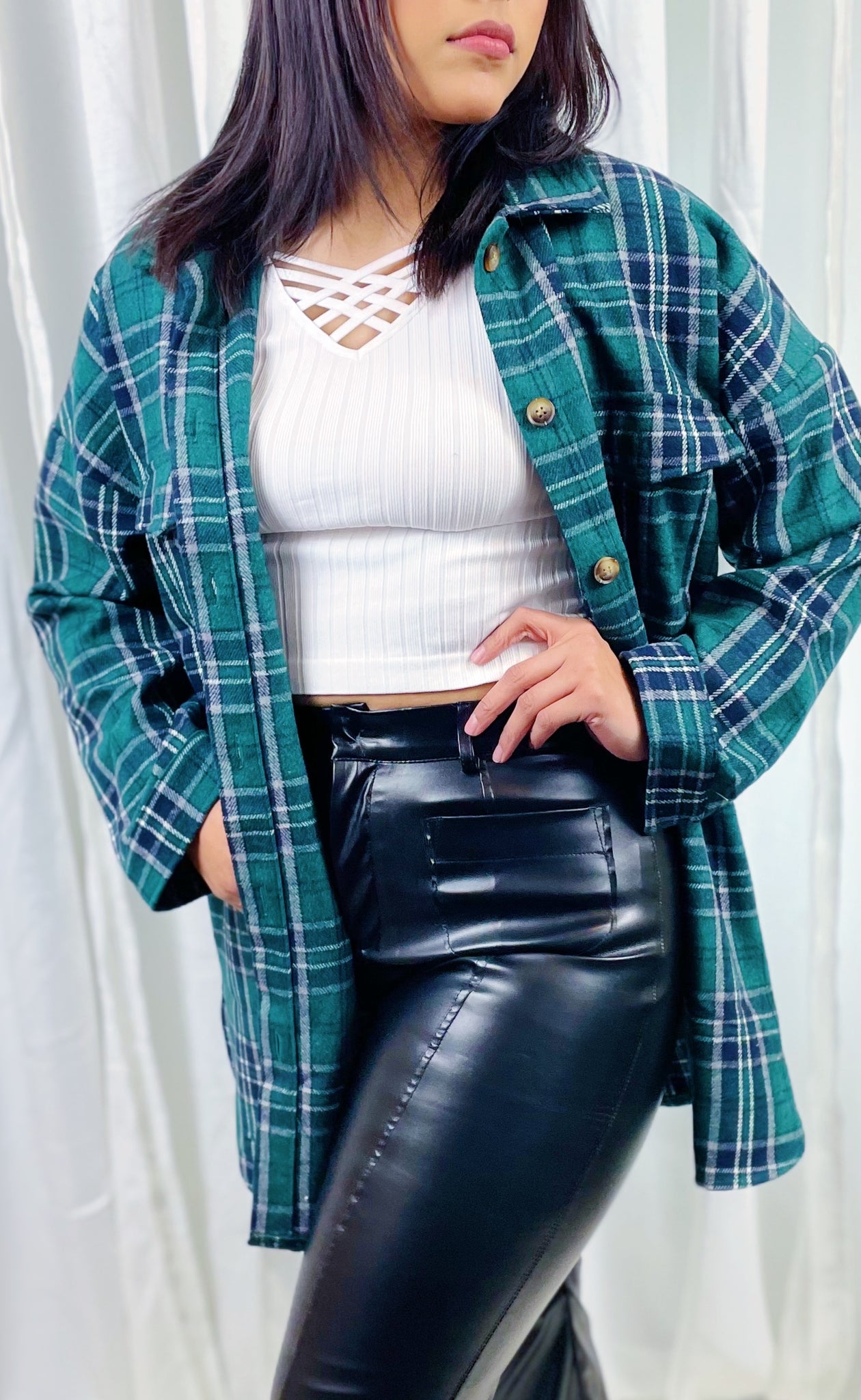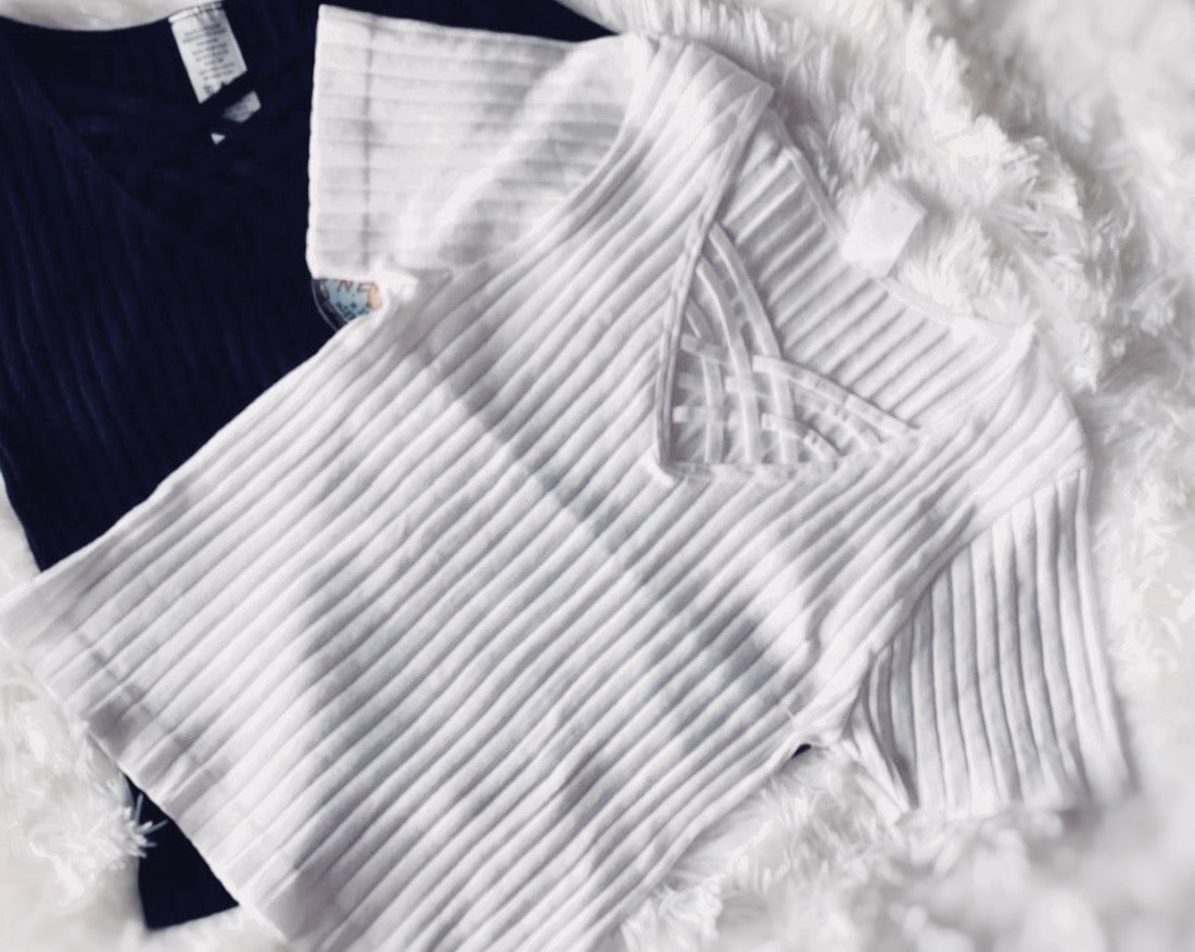 Here we have a top with elastic material that adjusts to your body shape, front cross v shape opening that give it and extra simple touch.