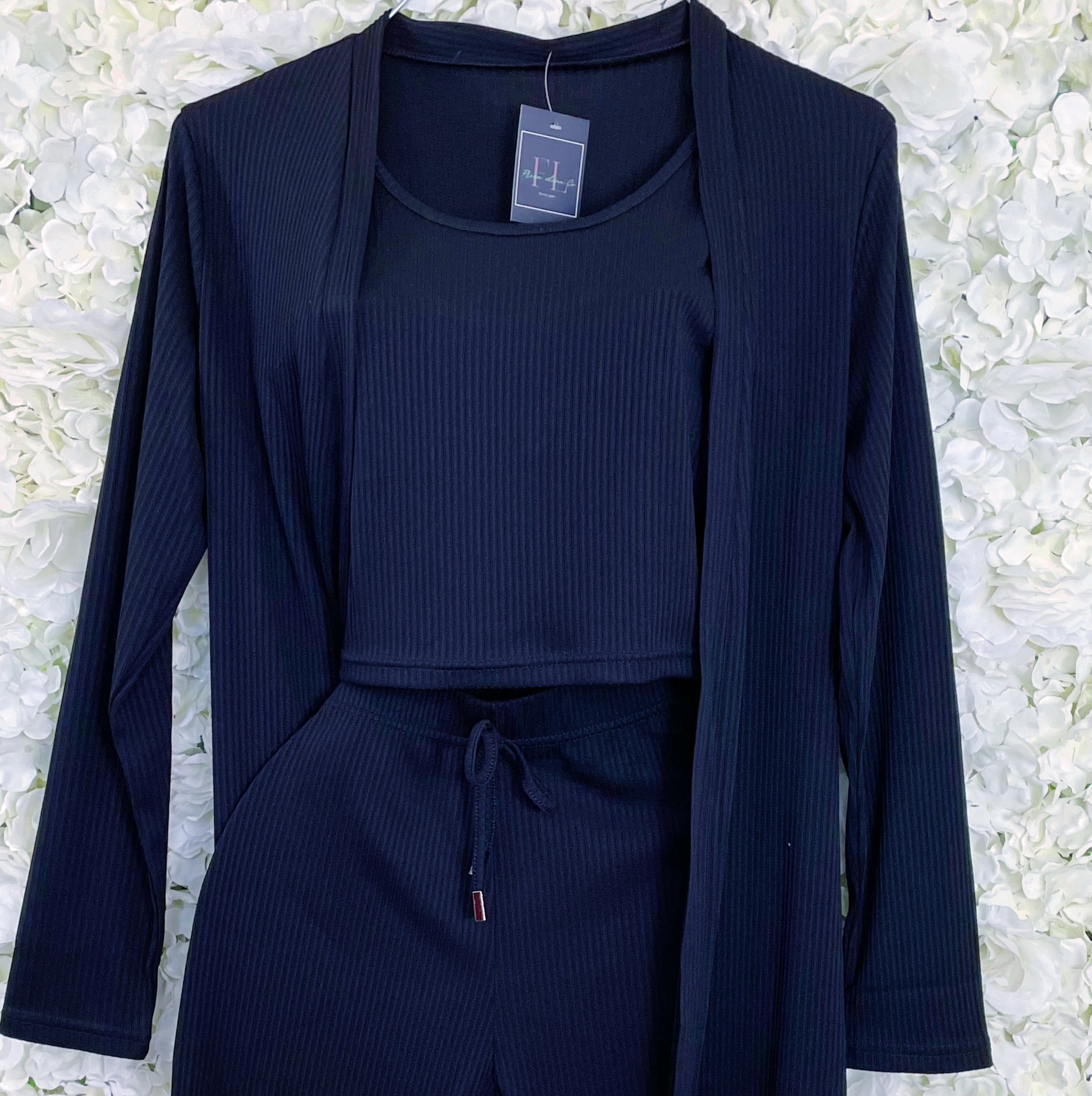 Experience the unparalleled softness of this 3-piece set, including a flirty cropped top and an oversized dress. Comfortably wrap yourself up in the long skinny pants for an undeniably stylish look.