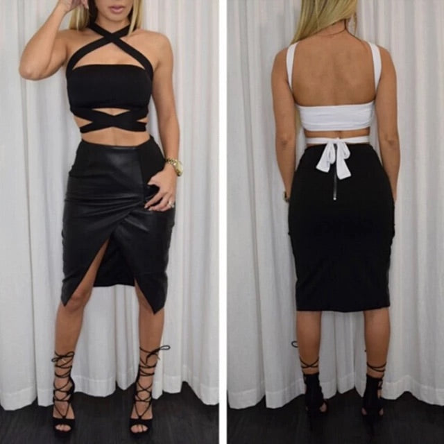 Bandage Crop cross top halter, Long spaghetti straps thats works in various multi uses way. come in three gorgeous colors and sizes.