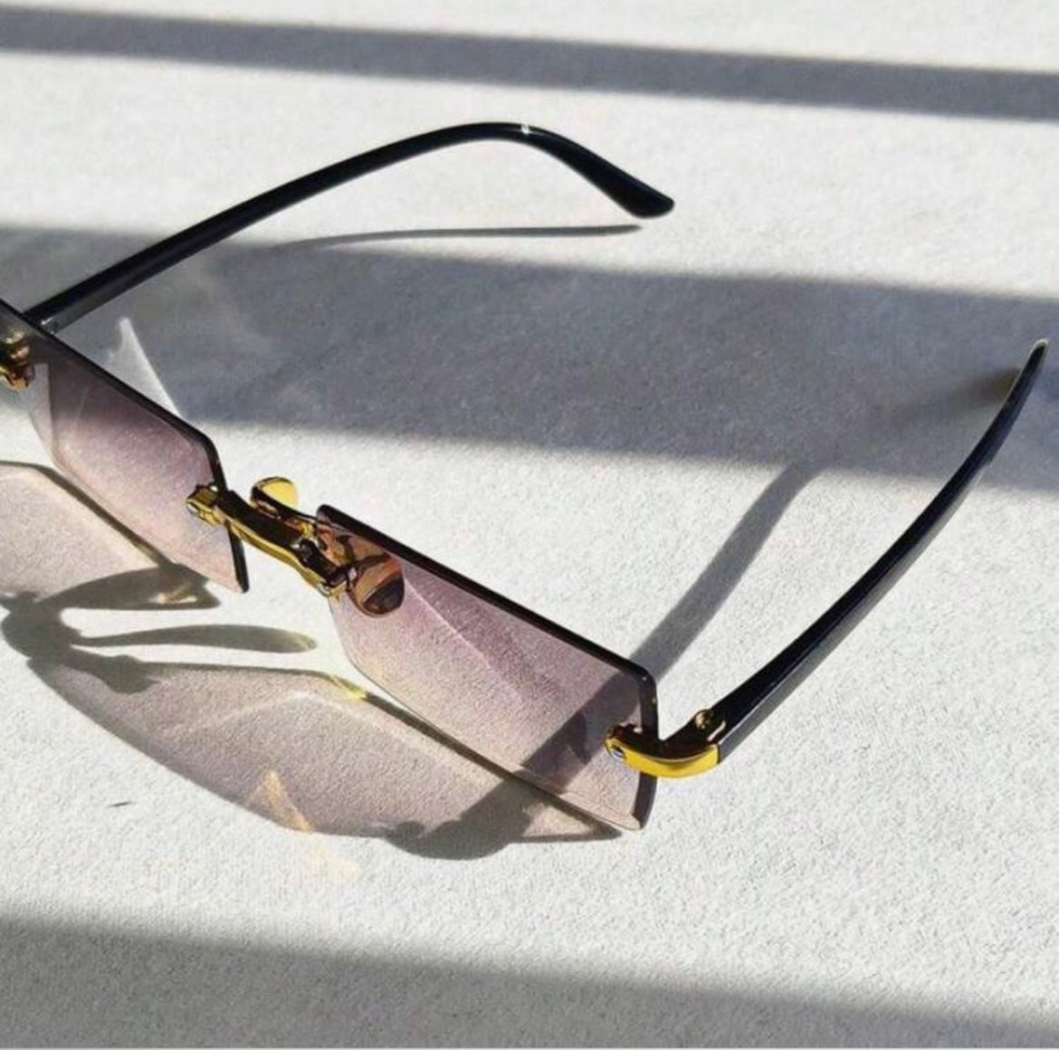 Sparkle up your look with these Iced Out Black rimless sunglasses! The gold frame and clear Black design will add a touch of glam to any killer outfit.